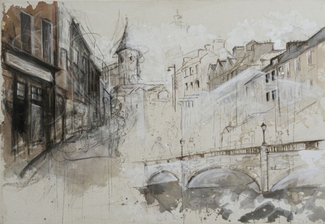 Abby Curran’s expressive drawings capture Cork’s vibrant energy, while Deirdre O’Neill’s painterly works evoke the city’s rich history. Together, their art reveals the layers of time etched into place and memory.