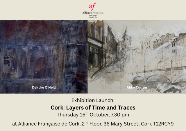 This exhibition can be viewed until the end of November, on Tuesdays from 5 pm to 8.30 pm, Wednesdays from 2 pm to 4.30 pm, and Saturdays from 10 am to 3 pm, at Alliance Française de Cork.